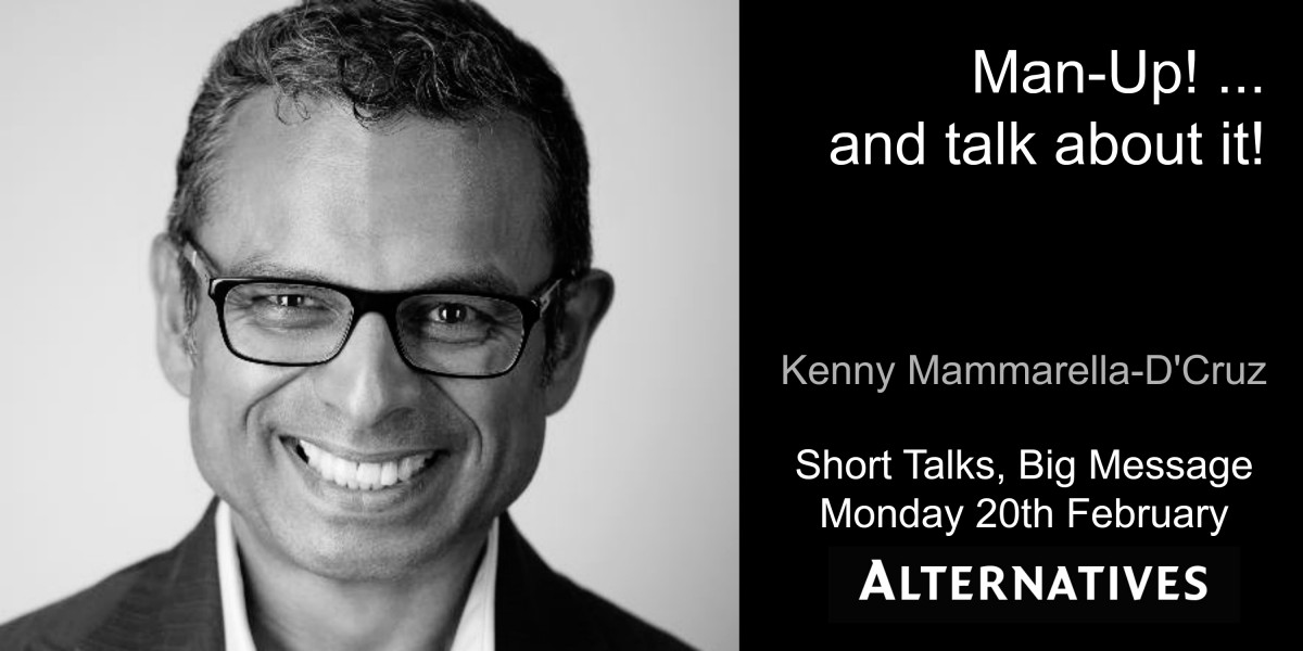 Kenny’s talk is tonight is titled “Man-Up! ...and talk about it!”. It’s about how, whether you’re trying to overcome a mental health issue, or whether you’re just trying to become a more authentic and powerful man, having the courage to talk about what’s really going on in your life is the key to set you free.